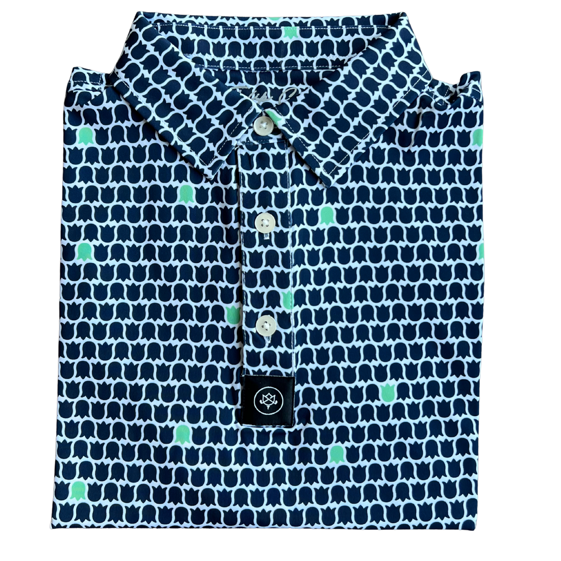 The Tulip Rows polo pays homage to the roots of the company name and the dutch tulip fields spanning acres and acres. Like a bright single tulip color sitting in a rows and rows of another color, this polo is a standout. Wearing Tulip City differs you from the crowd of mass-produced golf apparel and elevates over the rest of your closet.